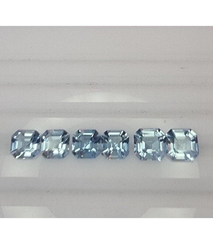 Our monthly promotion features fine Aquamarine matched pairs, in the Asscher cutting style. The rough came to us from Madagascar, and is unheated. These stones are all loupe clean, beautifully cut, and have a medium blue color. Calibrated and well matched, these are perfect for rings, pendants, or earrings.
